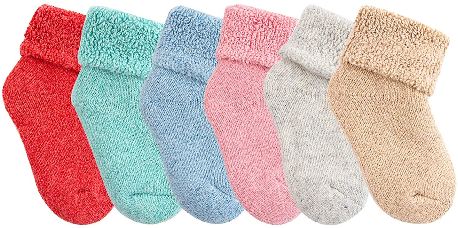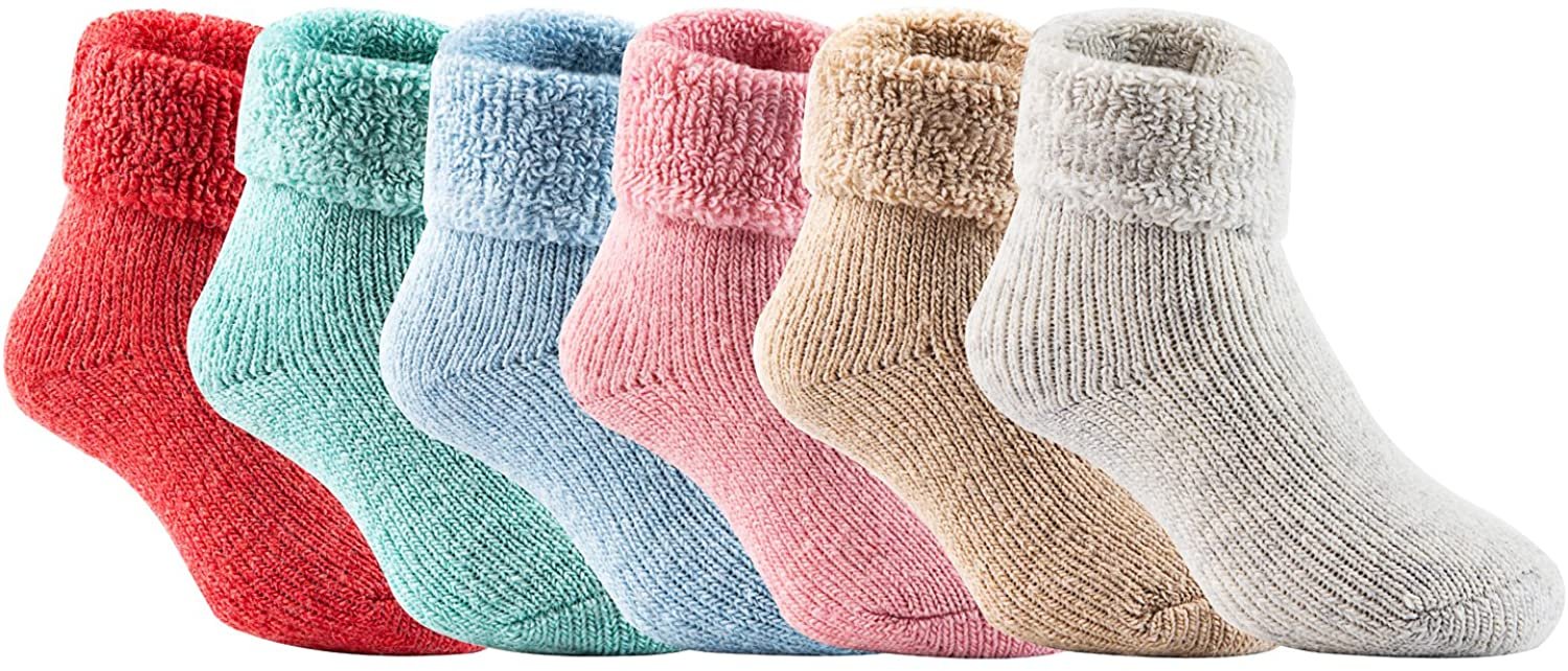 Treat your little one! The soft wool blend in these baby toddler crew socks are very absorbent, keeping your little one warm and toasty Wool can absorb more than thirty percent of its weight in moisture, so they’ll keep your child’s feet warm even when soaked Good grip, so they will stay on easily while being comfortable Deodorant and antibacterial capabilities Made with advanced manufacturing technique-boneless structure (imitation of manual making process) A variety of colors Comes in sets of 3 or 6 pairs 2016