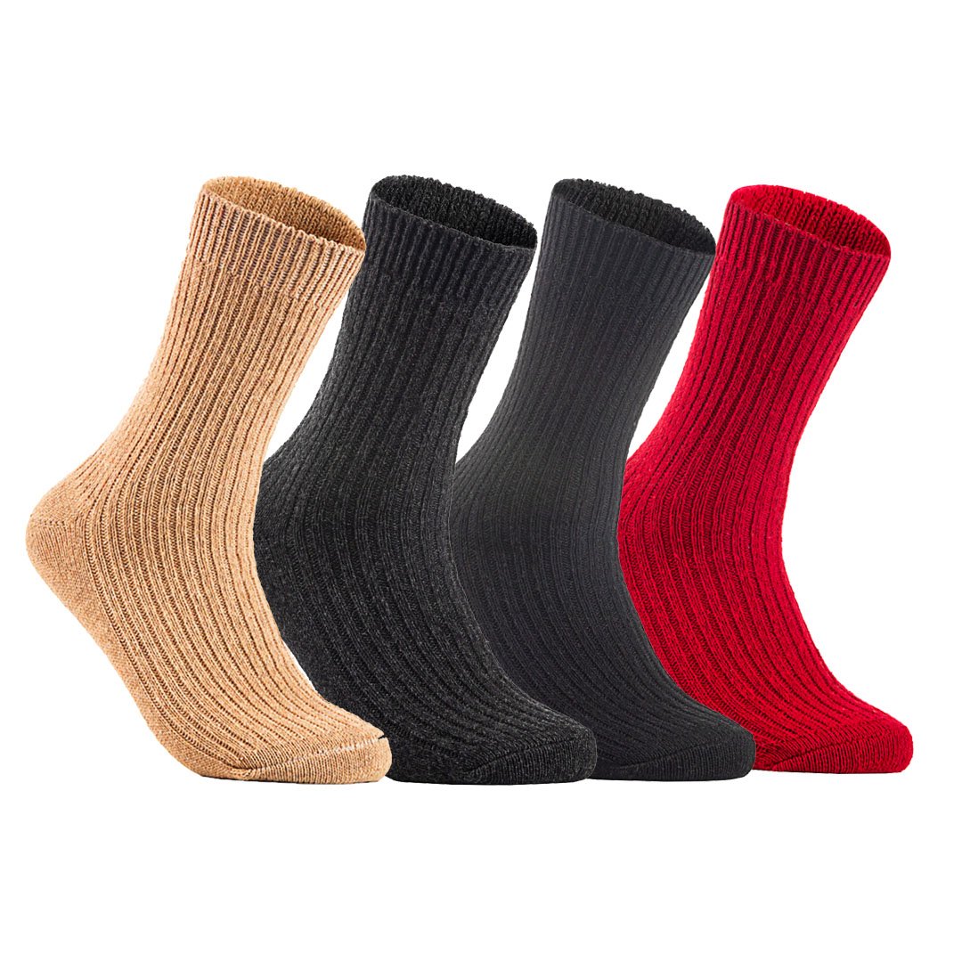 Lian LifeStyle Gorgeous Big Girls Women's 4 Pair Wool Crew Socks Size 6-9 FS03, Color (Beige,Black,DarkGrey,Red)