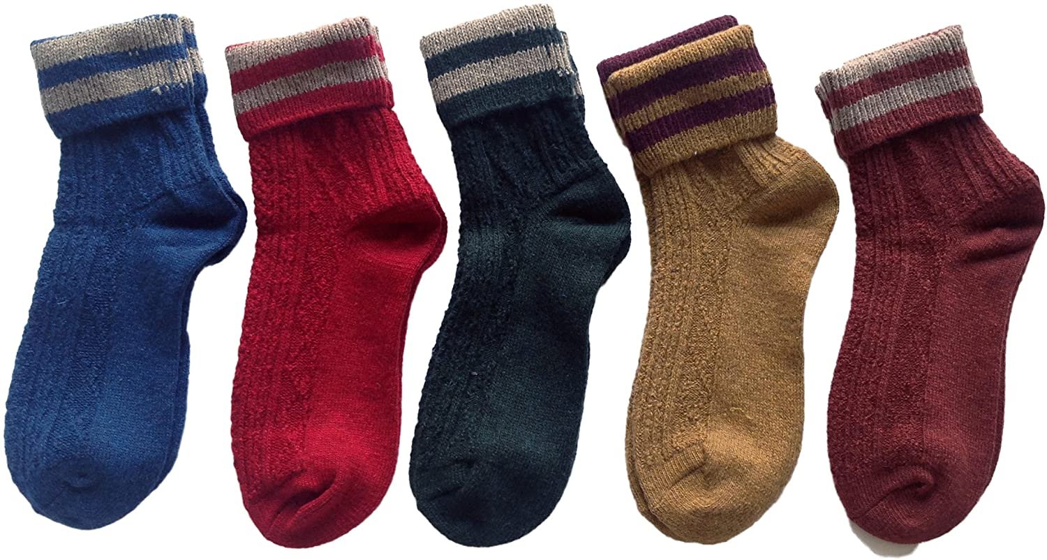 Lian LifeStyle Gorgeous Big Girl's Women's 5 Pairs Wool Crew Socks Size 6-9