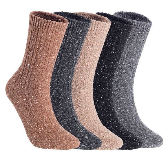 Lian LifeStyle Gorgeous Big Girls Women's 5 Pair's Wool Crew Socks Size 6-9, HR1614, Color (Beige, DarkGrey, Tan, Black, Grey)