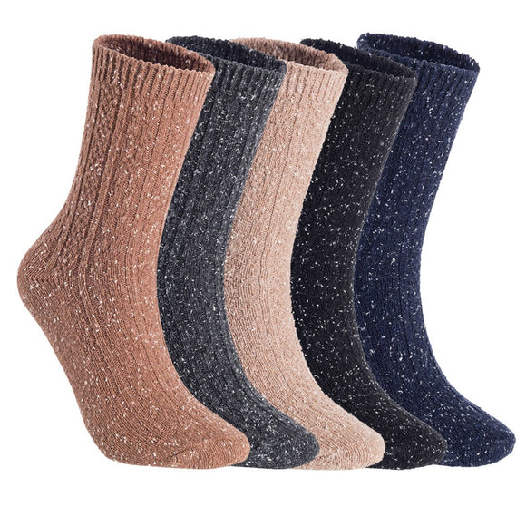 Lian LifeStyle Gorgeous Big Girls Women's 5 Pair's Wool Crew Socks Size 6-9, HR1614, Color (Beige, DarkGrey, Tan, Black, Navy)