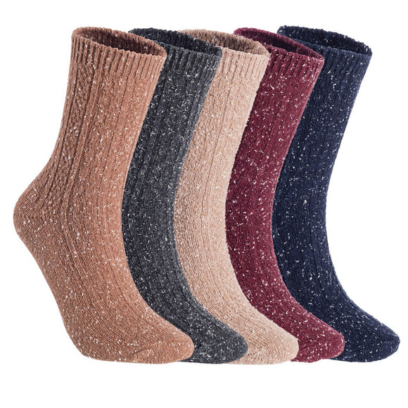 Lian LifeStyle Gorgeous Big Girls Women's 5 Pair's Wool Crew Socks Size 6-9, HR1614, Color (Beige, DarkGrey, Tan, Wine, Navy)