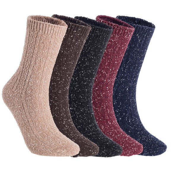 Lian LifeStyle Gorgeous Big Girls Women's 5 Pair's Wool Crew Socks Size 6-9, HR1614, Color (Tan, Coffee, Black, Wine, Navy)