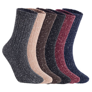Lian LifeStyle Gorgeous Big Girls Women's 6 Pair's Wool Crew Socks Size 6-9, HR1614, Color (DarkGrey, Tan, Coffee, Black, Wine, Navy)