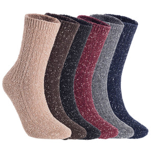 Lian LifeStyle Gorgeous Big Girls Women's 6 Pair's Wool Crew Socks Size 6-9, HR1614, Color (Tan, Coffee, Black, Wine, Grey, Navy)