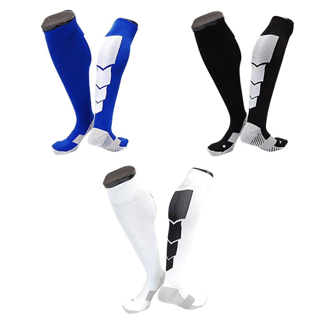 Lian LifeStyle Gorgeous Women's 2 3 Pair Long Athletic Football Soccer Socks Sport Tube Socks M XL0032-(Blue, Black, White)