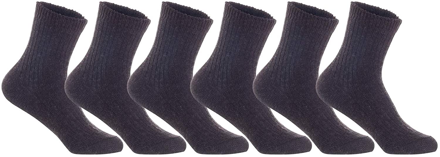 Lian LifeStyle Men's 6 Pairs Knitted Wool Blend Crew Socks LK08 Size Size 6-9 (Coffee)