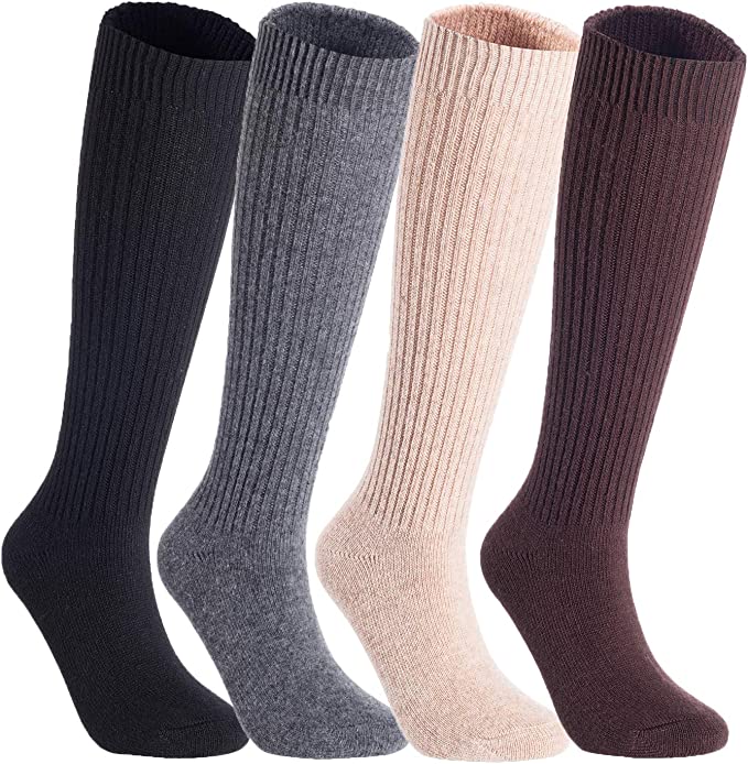 Lian LifeStyle Non Slip, Exceptional, Cozy and Cool Women's 4 Pairs Knee High Wool Crew Socks FS05 Size 6-9(Black,Grey,Beige,Brown)