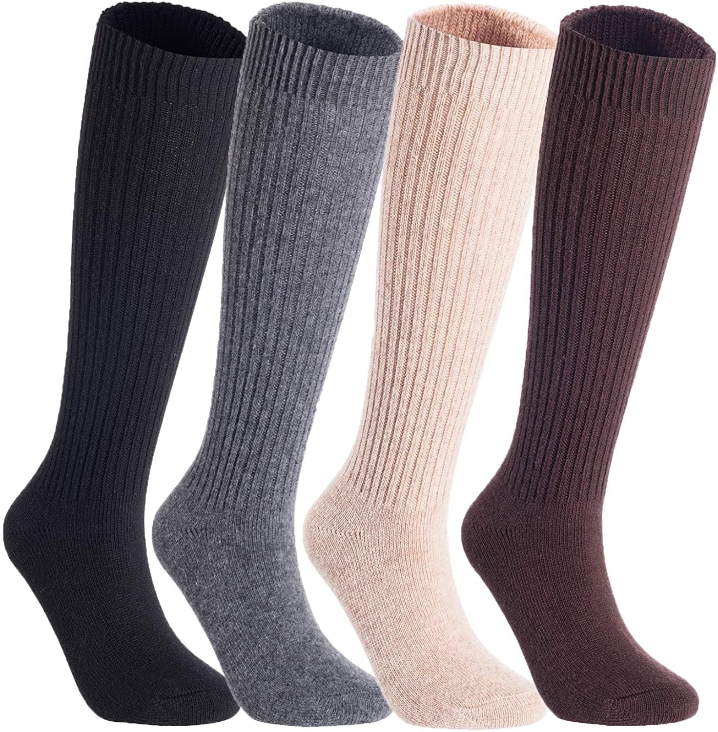 Lian LifeStyle Non Slip Women's 4 Pairs Knee High Wool Crew Socks FS05 Size 6-9