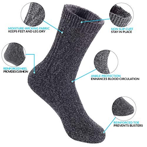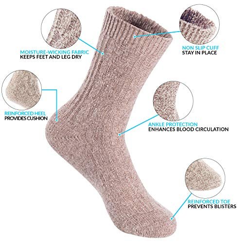 Lian LifeStyle Perfect Fit Women's 3 Pair's Wool Crew Socks For Healthy Feet. Cozy, Cute, and Comfortable Size 6-9 HR1613, Color (Dark Grey, Tan, Blue)