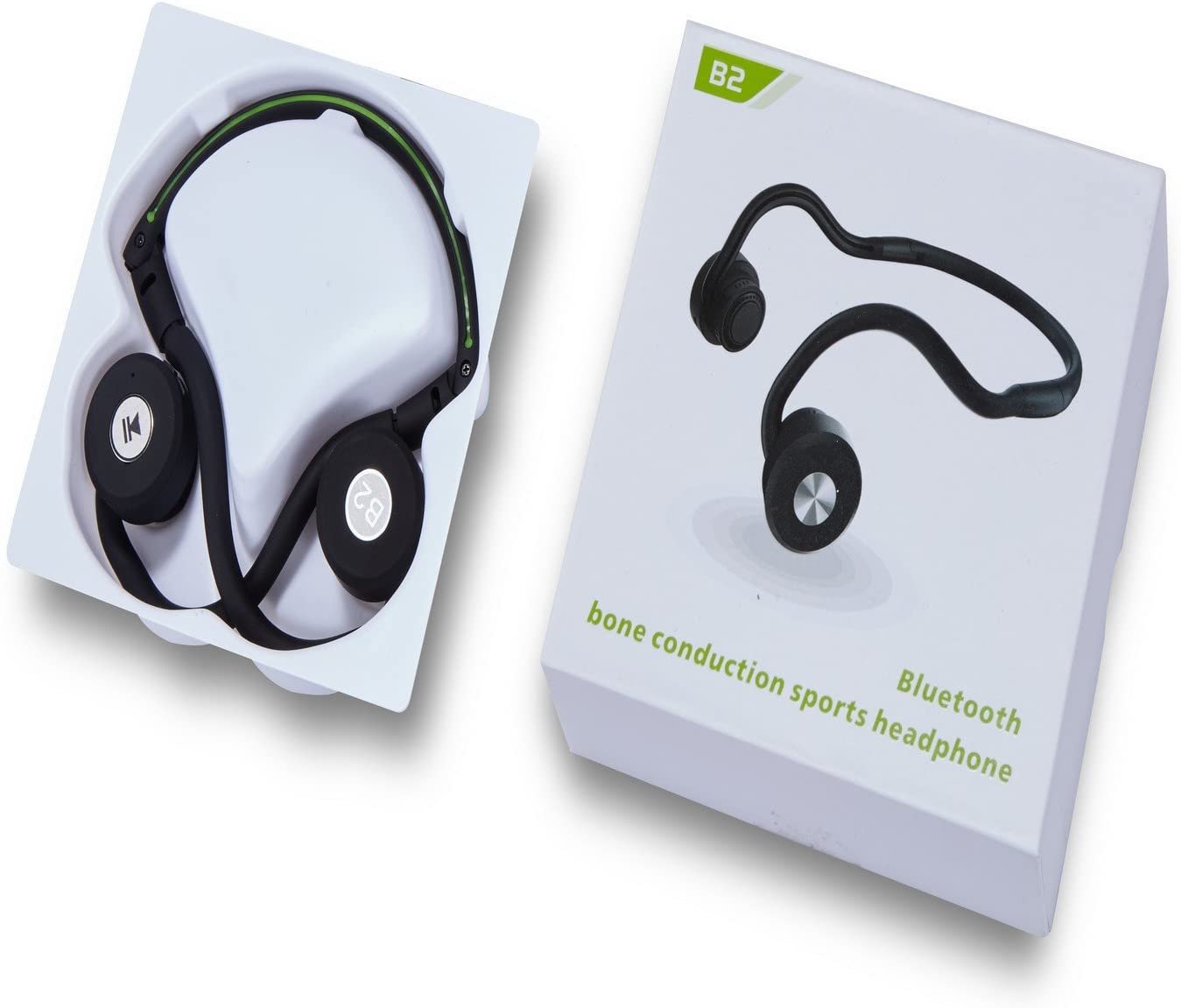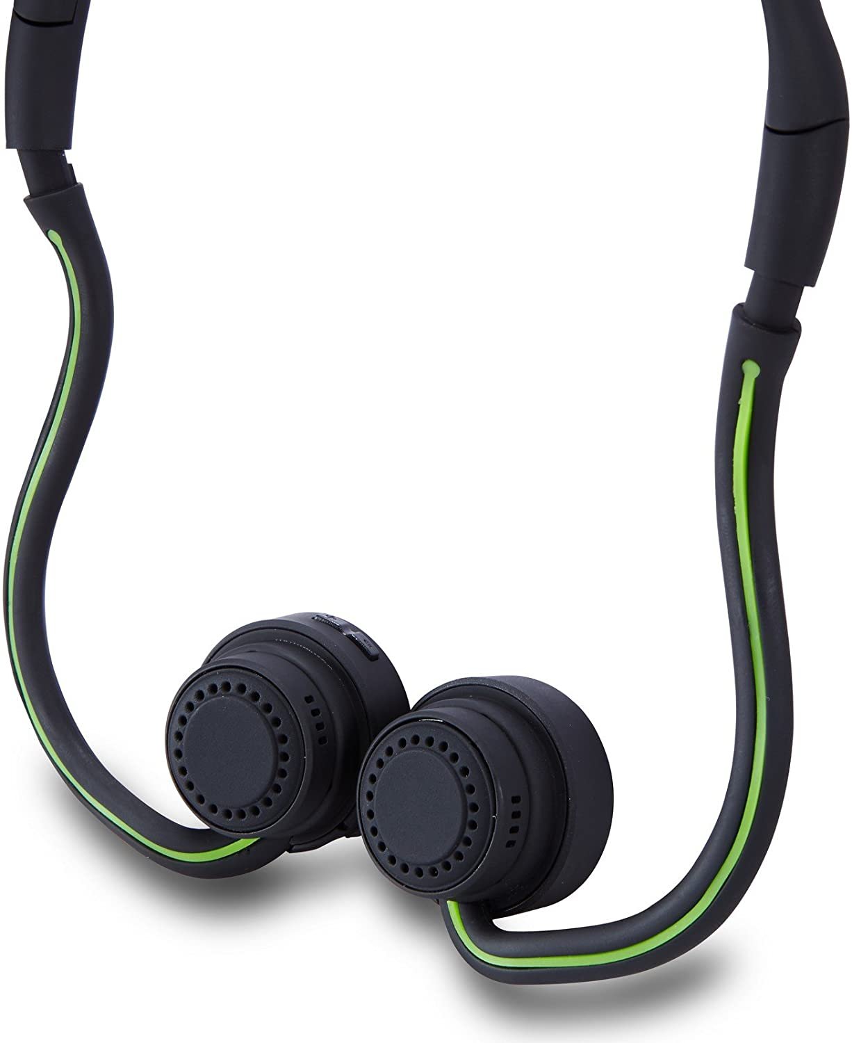 Lian LifeStyle Premium Bone Conduction Headphones Lightweight & Waterproof w/ Mic & Bluetooth. Wireless Over Ear Headset for Adults and Kids, suitable for Sports, Gaming, Travel, Office (Black Green)