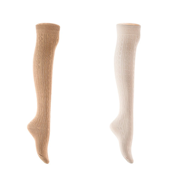 Lian LifeStyle Women's 2 Pair Adorable Comfortable Soft Thigh High Over Knee High Cotton Socks Size 6-9 L1024 (Beige,Cream)