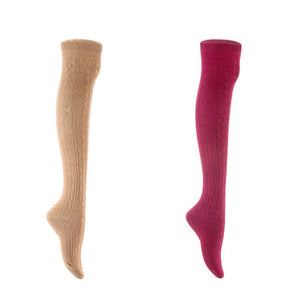 Lian LifeStyle Women's 2 Pair Adorable Comfortable Soft Thigh High Over Knee High Cotton Socks Size 6-9 L1024 (Beige,Wine)