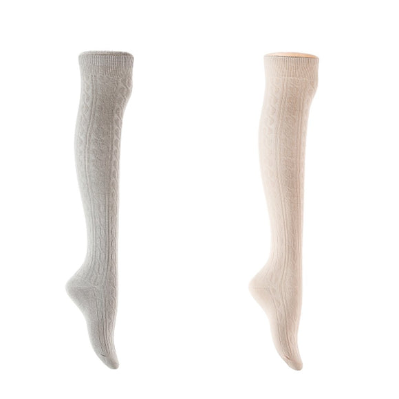 Lian LifeStyle Women's 2 Pair Adorable Comfortable Soft Thigh High Over Knee High Cotton Socks Size 6-9 L1024 (Light Grey,Cream)