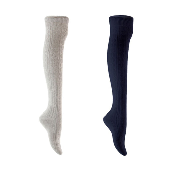 Lian LifeStyle Women's 2 Pair Adorable Comfortable Soft Thigh High Over Knee High Cotton Socks Size 6-9 L1024 (Light Grey,Navy)