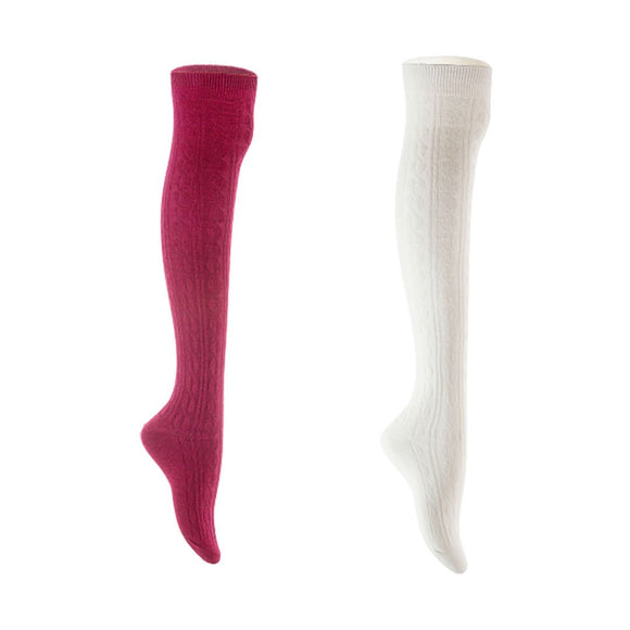 Lian LifeStyle Women's 2 Pair Adorable Comfortable Soft Thigh High Over Knee High Cotton Socks Size 6-9 L1024 (Wine,White)
