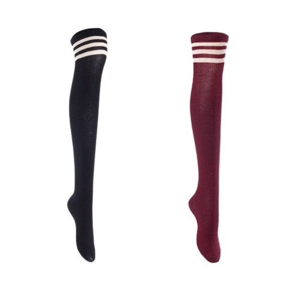 Lian LifeStyle Women's 2 Pairs Adorable Comfortable Soft Thigh High Over Knee High Cotton Socks Size 6-9 L1022 (Black,Wine)