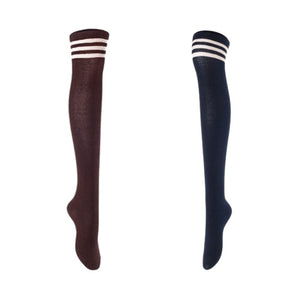 Lian LifeStyle Women's 2 Pairs Adorable Comfortable Soft Thigh High Over Knee High Cotton Socks Size 6-9 L1022 (Coffee,Navy)
