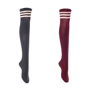Lian LifeStyle Women's 2 Pairs Adorable Comfortable Soft Thigh High Over Knee High Cotton Socks Size 6-9 L1022 (Dar Grey,Wine)