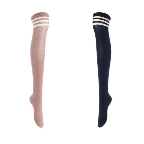 Lian LifeStyle Women's 2 Pairs Adorable Comfortable Soft Thigh High Over Knee High Cotton Socks Size 6-9 L1022 (Khaki,Navy)