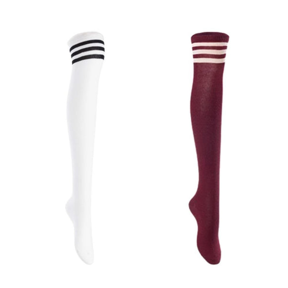 Lian LifeStyle Women's 2 Pairs Adorable Comfortable Soft Thigh High Over Knee High Cotton Socks Size 6-9 L1022 (White,Wine)
