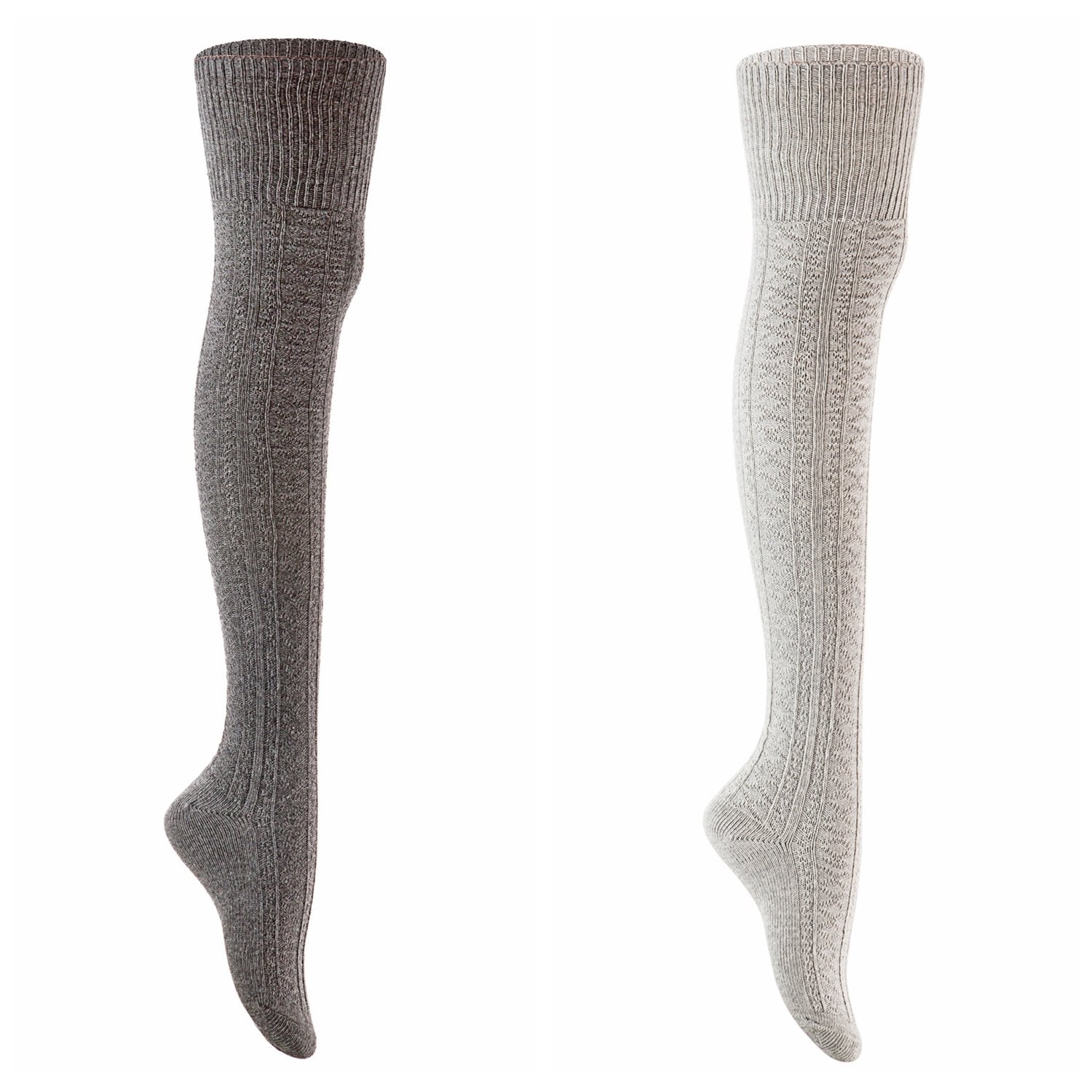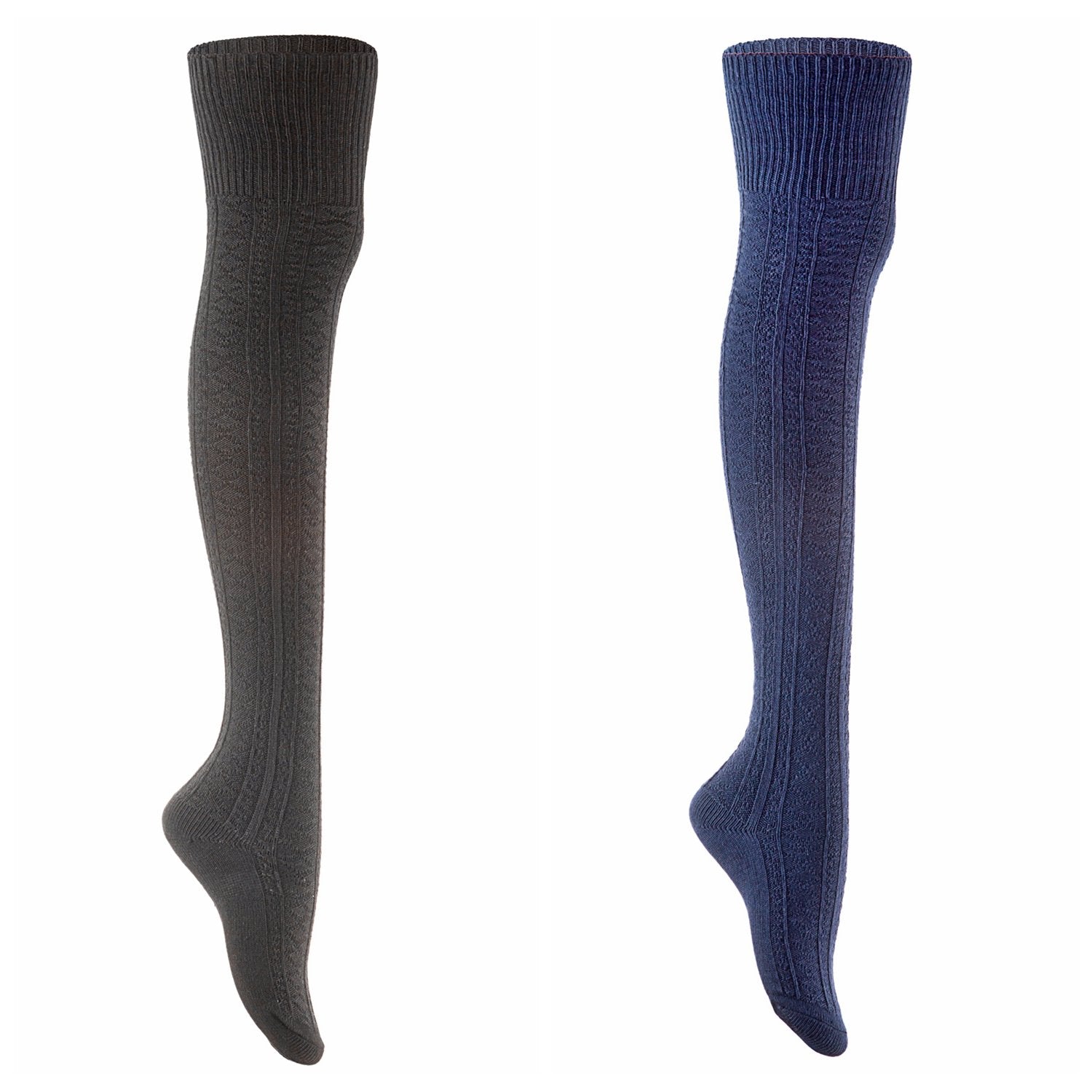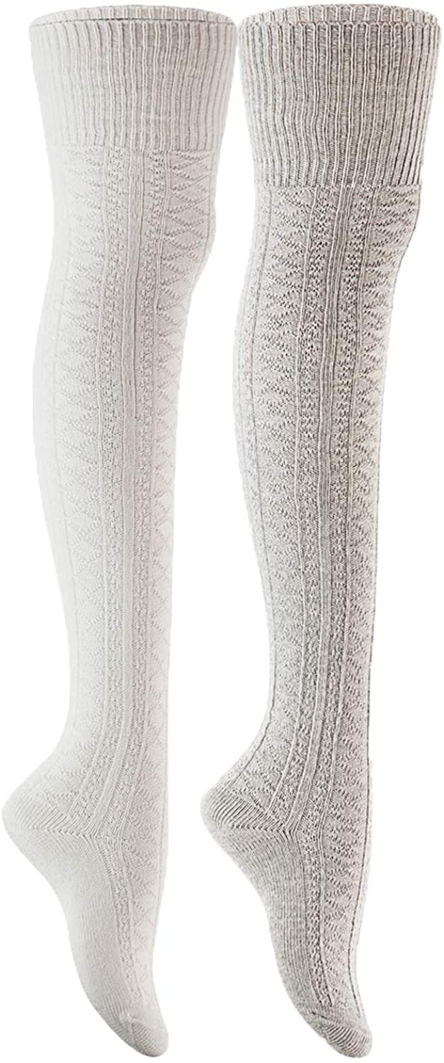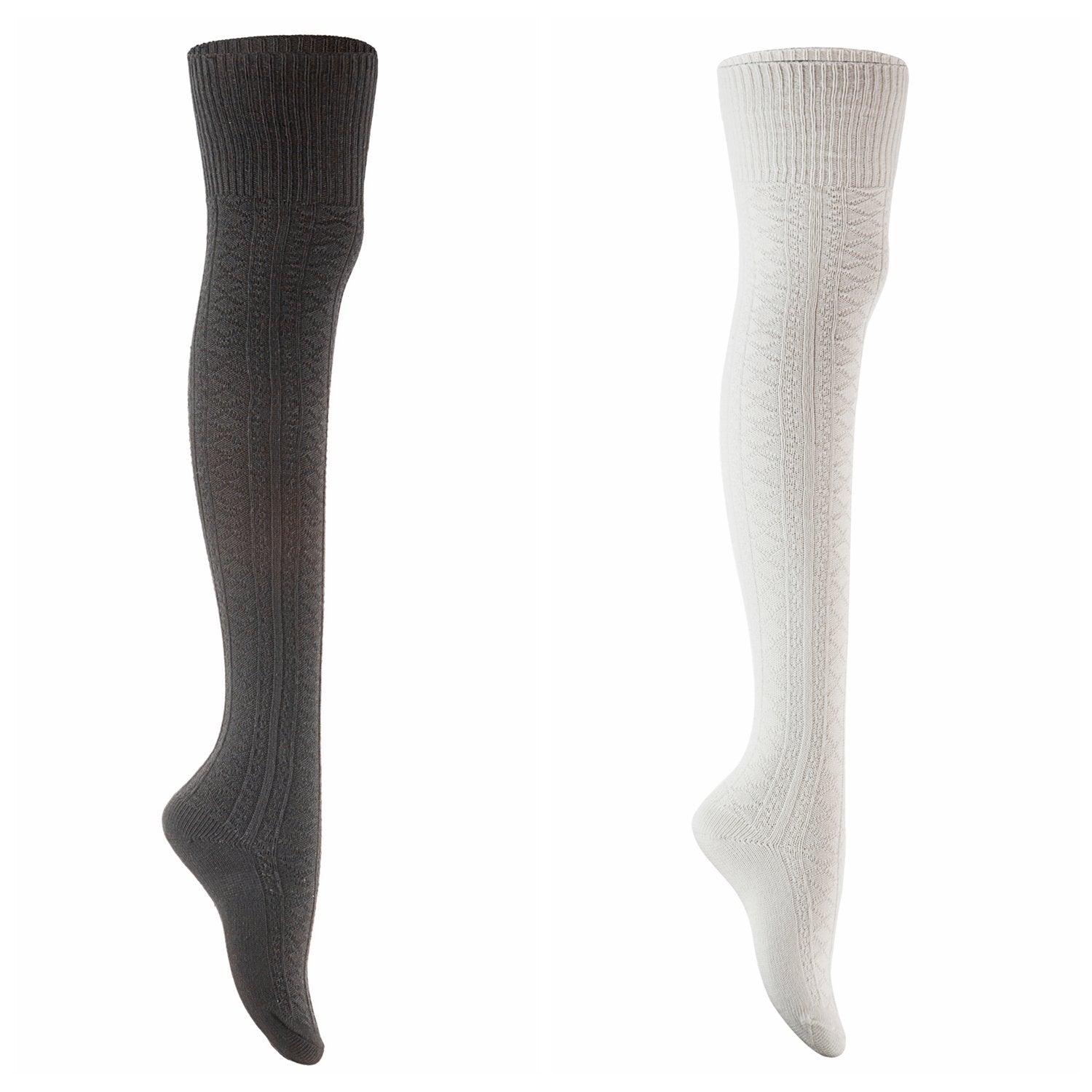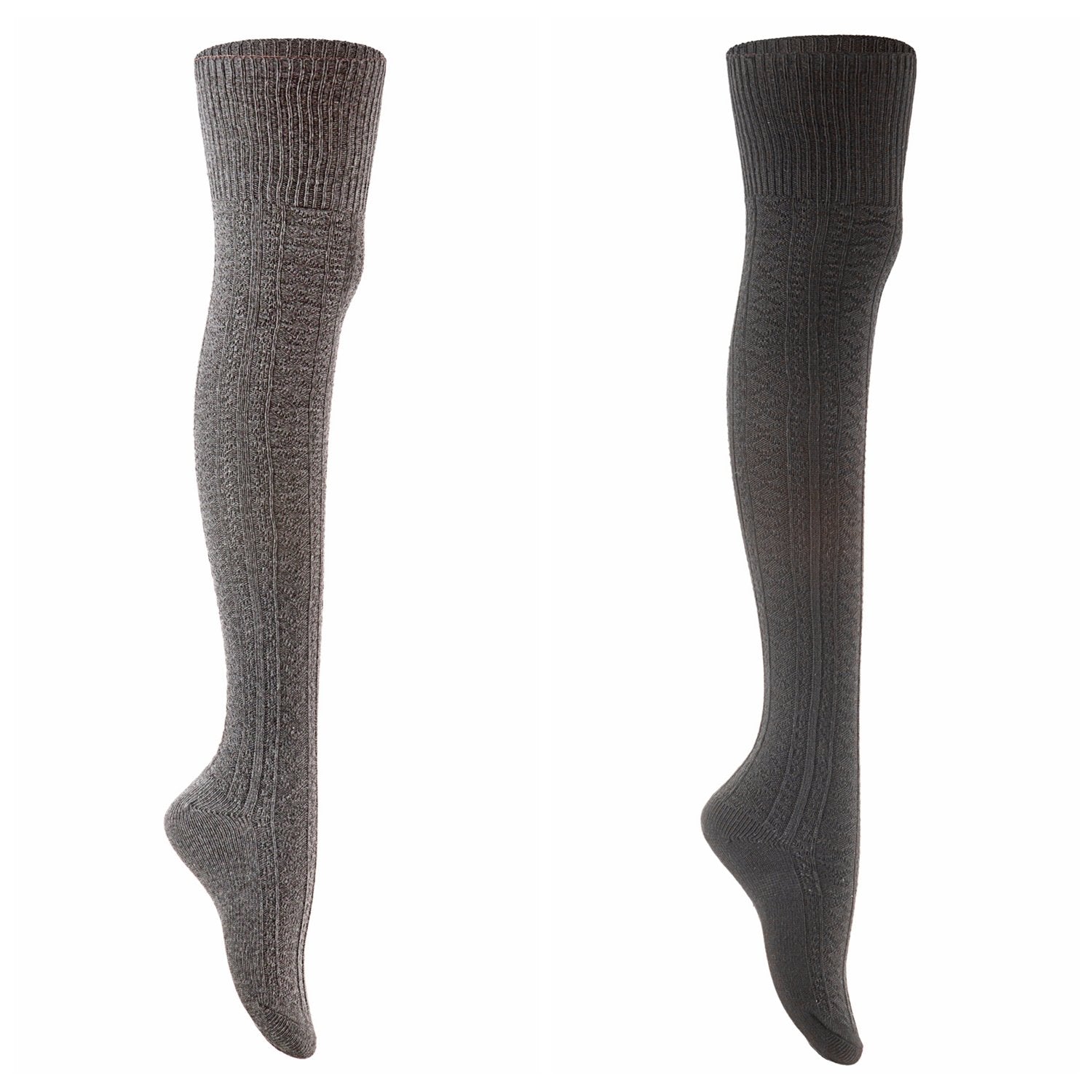 Lian LifeStyle Women's 2 Pairs Adorable Thigh High Cotton Socks LLS1025 Size 6-9