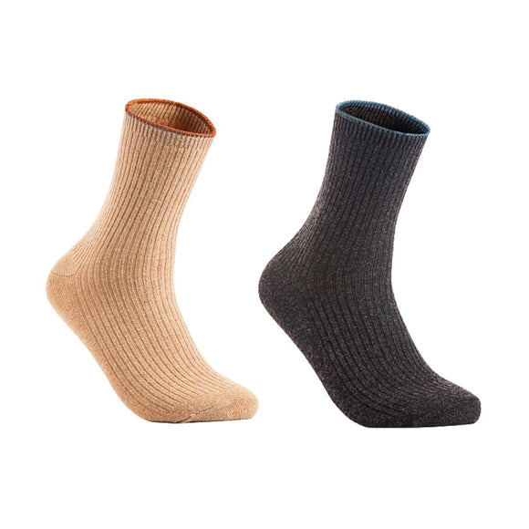 Lian LifeStyle Women's 2 Pairs Cute & Comfortable Wool Crew Socks Size 6-9 HR1612, Color (Beige, DarkGrey)