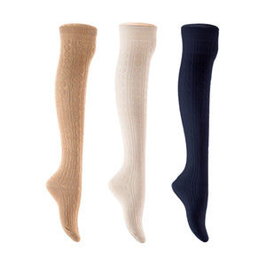 Lian LifeStyle Women's 3 Pair Adorable Comfortable Soft Thigh High Over Knee High Cotton Socks Size 6-9 L1024 (Beige,Cream,Navy)