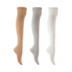 Lian LifeStyle Women's 3 Pair Adorable Comfortable Soft Thigh High Over Knee High Cotton Socks Size 6-9 L1024 (Beige,Light Grey,White)