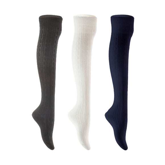 Lian LifeStyle Women's 3 Pair Adorable Comfortable Soft Thigh High Over Knee High Cotton Socks Size 6-9 L1024 (Black,White,Navy)