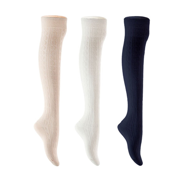 Lian LifeStyle Women's 3 Pair Adorable Comfortable Soft Thigh High Over Knee High Cotton Socks Size 6-9 L1024 (Cream,White,Navy)