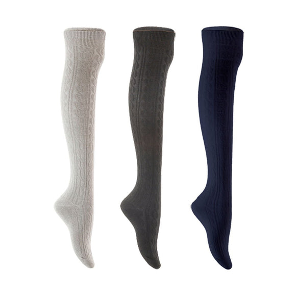Lian LifeStyle Women's 3 Pair Adorable Comfortable Soft Thigh High Over Knee High Cotton Socks Size 6-9 L1024 (Light Grey,Black,Navy)