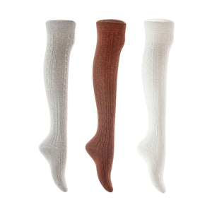 Lian LifeStyle Women's 3 Pair Adorable Comfortable Soft Thigh High Over Knee High Cotton Socks Size 6-9 L1024 (Light Grey,Coffee,White)