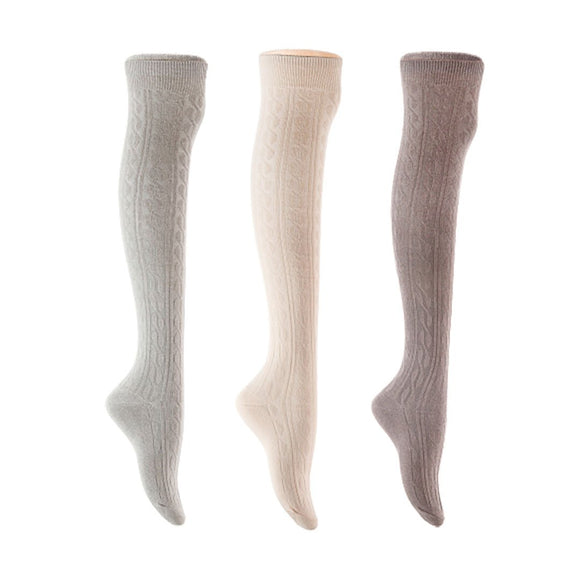 Lian LifeStyle Women's 3 Pair Adorable Comfortable Soft Thigh High Over Knee High Cotton Socks Size 6-9 L1024 (Light Grey,Cream,Dark Grey)
