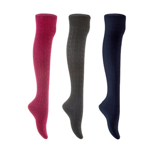 Lian LifeStyle Women's 3 Pair Adorable Comfortable Soft Thigh High Over Knee High Cotton Socks Size 6-9 L1024 (Wine,Black,Navy)