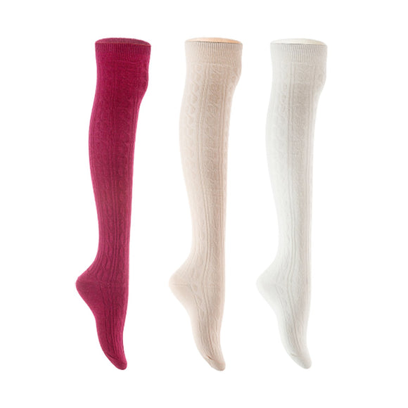 Lian LifeStyle Women's 3 Pair Adorable Comfortable Soft Thigh High Over Knee High Cotton Socks Size 6-9 L1024 (Wine,Cream,White)