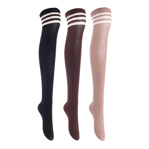 Lian LifeStyle Women's 3 Pairs Adorable Comfortable Soft Thigh High Over Knee High Cotton Socks, Size 6-9, JMYP1022 (Black, Coffee, Khaki)