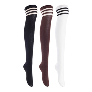 Lian LifeStyle Women's 3 Pairs Adorable Comfortable Soft Thigh High Over Knee High Cotton Socks, Size 6-9, JMYP1022 (Black, Coffee, White)