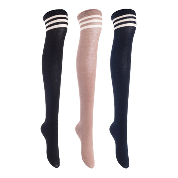 Lian LifeStyle Women's 3 Pairs Adorable Comfortable Soft Thigh High Over Knee High Cotton Socks, Size 6-9, JMYP1022 (Black, Khaki, Navy)