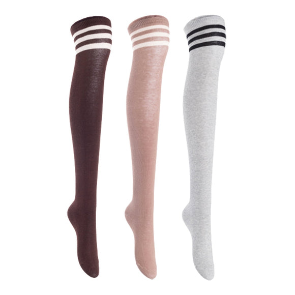 Lian LifeStyle Women's 3 Pairs Adorable Comfortable Soft Thigh High Over Knee High Cotton Socks, Size 6-9, JMYP1022 (Coffee, Khaki, LightGrey)