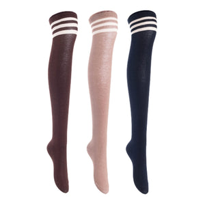 Lian LifeStyle Women's 3 Pairs Adorable Comfortable Soft Thigh High Over Knee High Cotton Socks, Size 6-9, JMYP1022 (Coffee, Khaki, Navy)