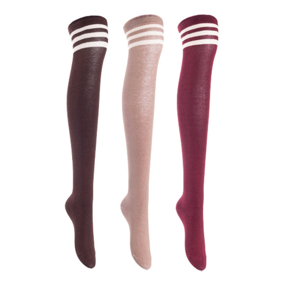 Lian LifeStyle Women's 3 Pairs Adorable Comfortable Soft Thigh High Over Knee High Cotton Socks, Size 6-9, JMYP1022 (Coffee, Khaki, Wine)
