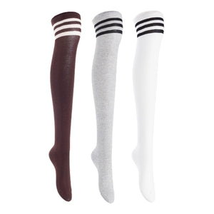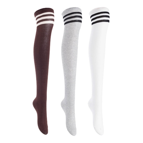 Lian LifeStyle Women's 3 Pairs Adorable Comfortable Soft Thigh High Over Knee High Cotton Socks, Size 6-9, JMYP1022 (Coffee, LightGrey, White)