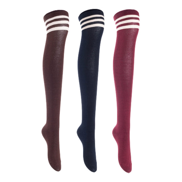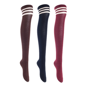 Lian LifeStyle Women's 3 Pairs Adorable Comfortable Soft Thigh High Over Knee High Cotton Socks, Size 6-9, JMYP1022 (Coffee, Navy, Wine)