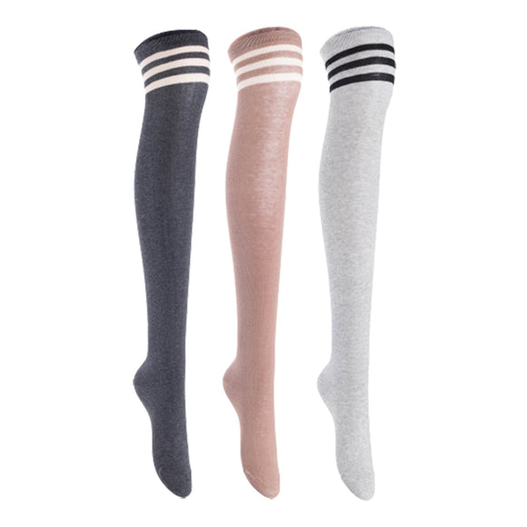 Lian LifeStyle Women's 3 Pairs Adorable Comfortable Soft Thigh High Over Knee High Cotton Socks, Size 6-9, JMYP1022 (DarkGrey, Khaki, LightGrey)