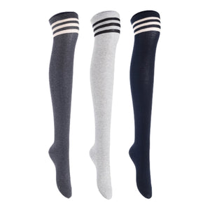 Lian LifeStyle Women's 3 Pairs Adorable Comfortable Soft Thigh High Over Knee High Cotton Socks, Size 6-9, JMYP1022 (DarkGrey, LightGrey, Navy)