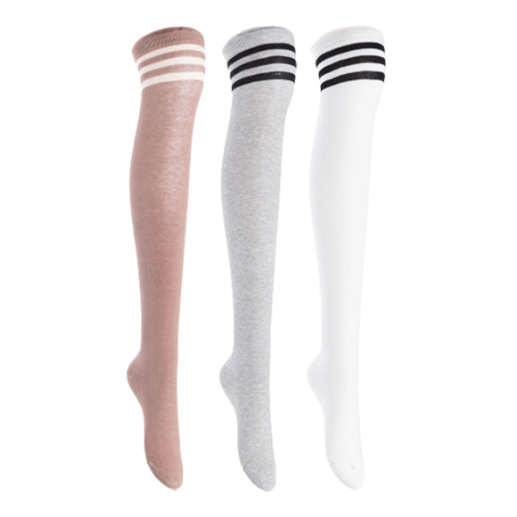 Lian LifeStyle Women's 3 Pairs Adorable Comfortable Soft Thigh High Over Knee High Cotton Socks, Size 6-9, JMYP1022 (Khaki, LightGrey, White)
