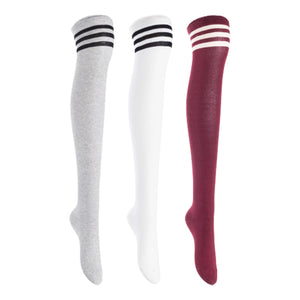 Lian LifeStyle Women's 3 Pairs Adorable Comfortable Soft Thigh High Over Knee High Cotton Socks, Size 6-9, JMYP1022 (LightGrey, White, Wine)