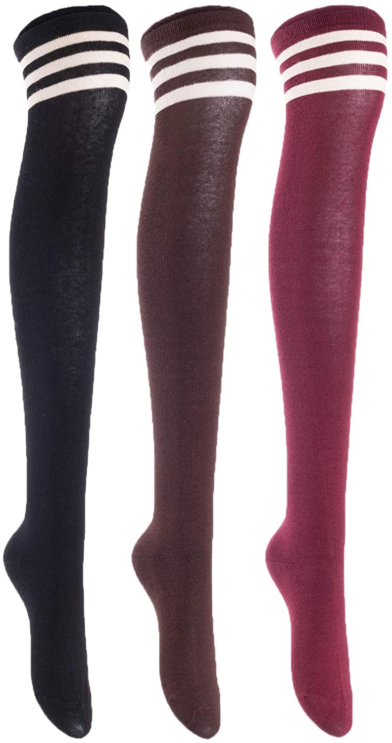 Lian LifeStyle Women's 3 Pairs Adorable Comfortable Soft Thigh High Over Knee High Cotton Socks Size 6-9 L1022(Black, Coffee, Wine)