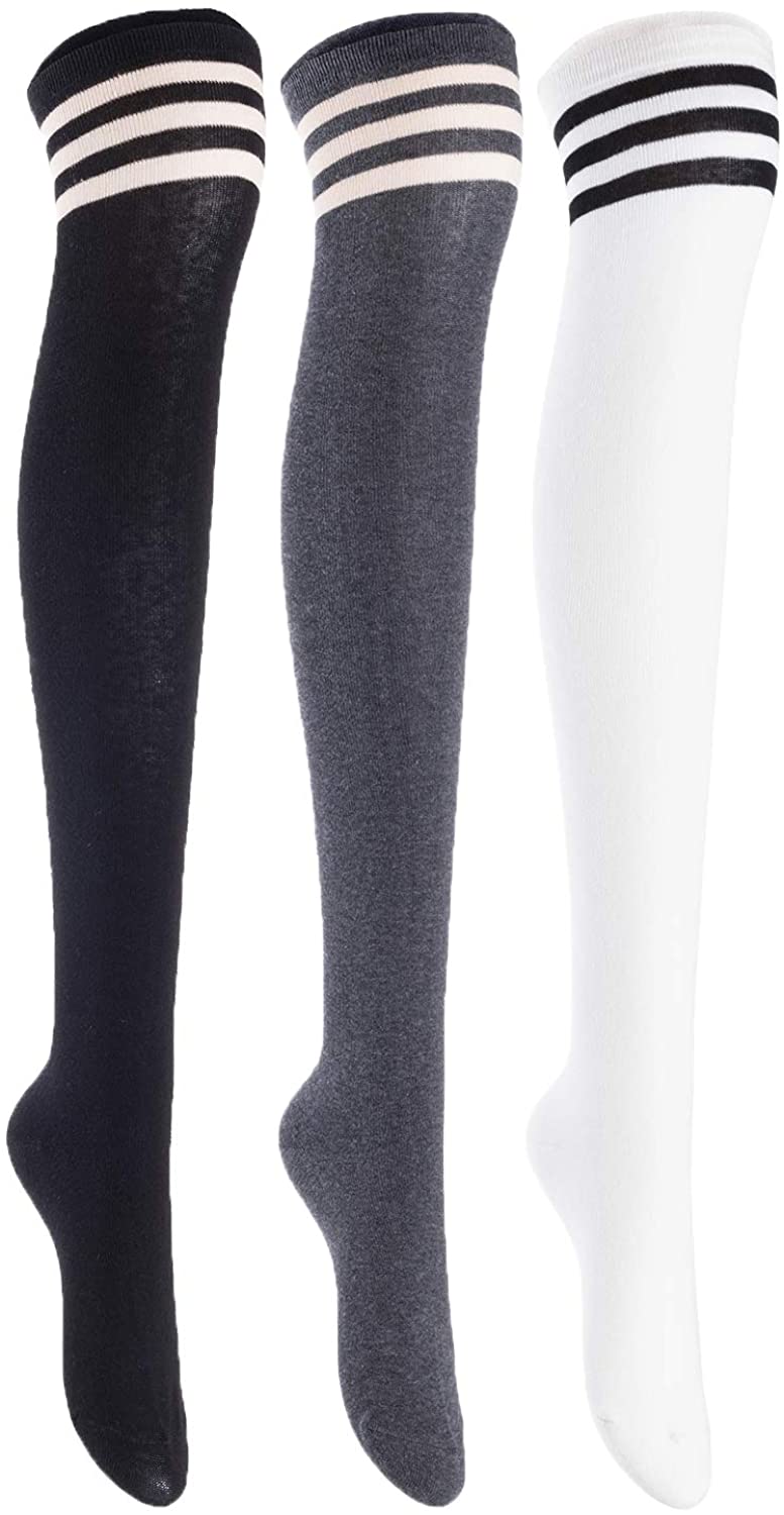 Lian LifeStyle Women's 3 Pairs Adorable Comfortable Soft Thigh High Over Knee High Cotton Socks Size 6-9 L1022(Black, Dark Grey, White)
